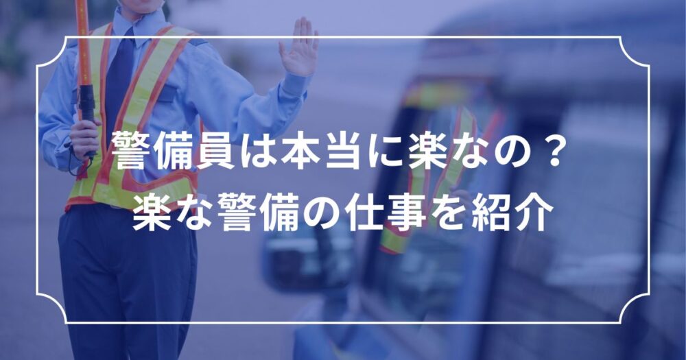 つまり、「警備員=楽」ではなく、「身体的に楽な警備もある」というのが正確な表現です。