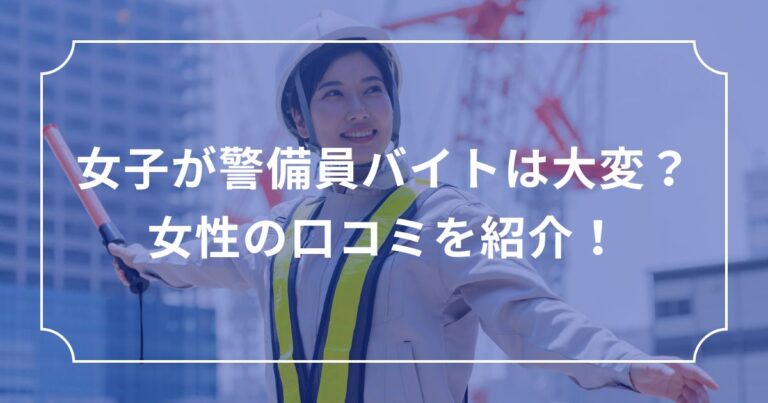 警備の仕事は男性中心というイメージが強いですが、近年は女性警備員のニーズが増加しており、現場で活躍する女性スタッフも少なくありません。 とはいえ、女性ならではの大変さや、体力面での不安を感じる現場があるのも事実。 そこで … 続きを読む 女子が警備員バイトをやるのは大変?女性の口コミを紹介!